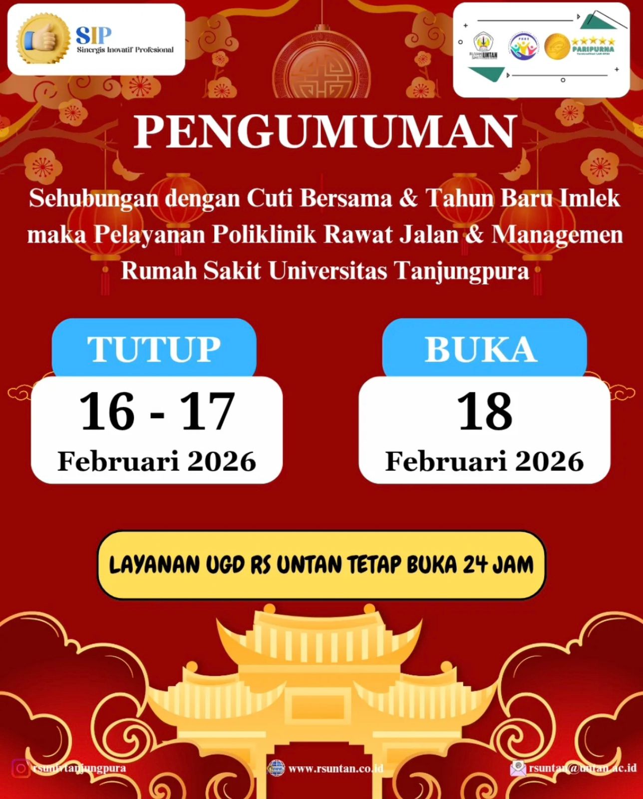 Pengumuman 14 Februari 2026 | Tidak ada komentar Berita Terkini | Tags: ramahdanpeduli, rsuntan, rsuntanpontianak, rumahsakit, rumahsakituntan